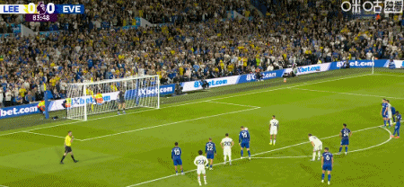 第84分钟,塔尔科夫斯基手球送点,恩梅加主罚命中!利兹联1-0埃弗顿